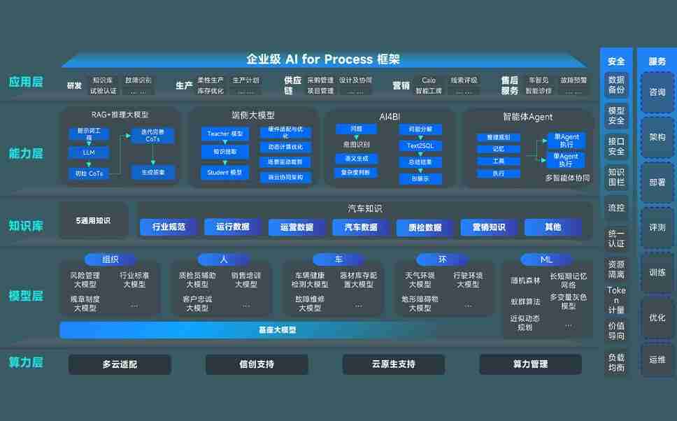 尊龙集团问学智车解决方案是一套基于AI技术的汽车行业智能化系统,,,覆盖从底层算力到顶层AI应用的全栈方案。。。。方案由算力层、、、模型层和应用层组成:算力层,,,方案支持多种一体机配置,,具备云端灵活部署、、多云适配以及动态优化计算资源的能力;模型层,,,,尊龙集团问学平台版提供了企业级AI应用一站式构建与管理平台,,支持基于后训练强化技术的汽车企业专属模型的训练、、、评测和运营;应用层,,,,尊龙集团问学DeepSeek版提供包括超级员工、、智能招采、、、智能营销、、、、智能客服、、、、AI for BI等一系列解决方案,,,可助力汽车行业实现数字化转型,,,,让管理更智能、、、、响应更敏捷。。。